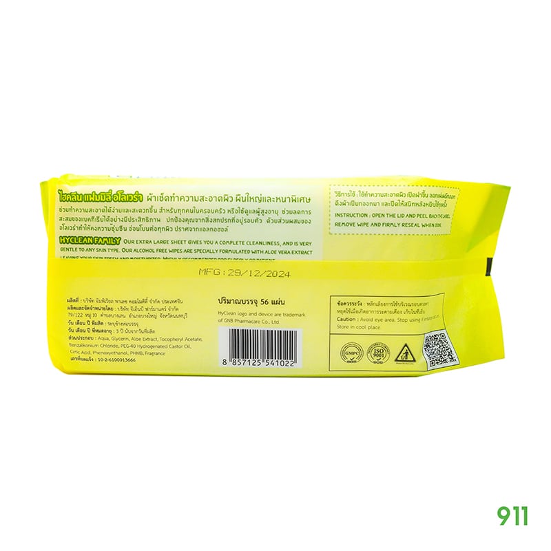แผ่นเช็ดทำความสะอาด ทิชชู่เปียก (Hy Clean Family Wipes Aloe Vera)