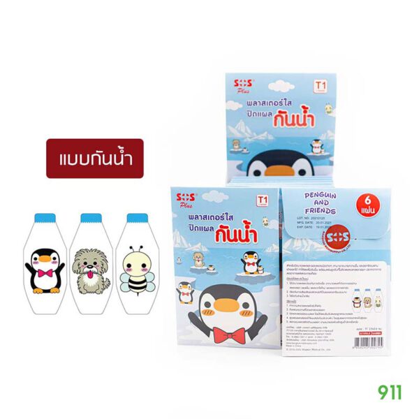 เอสโอเอส พลัส พลาสเตอร์ใสปิดแผล กันน้ำ ลายเพนกวิน (SOS Plus Cute Aid Plaster Penguin Waterproof)