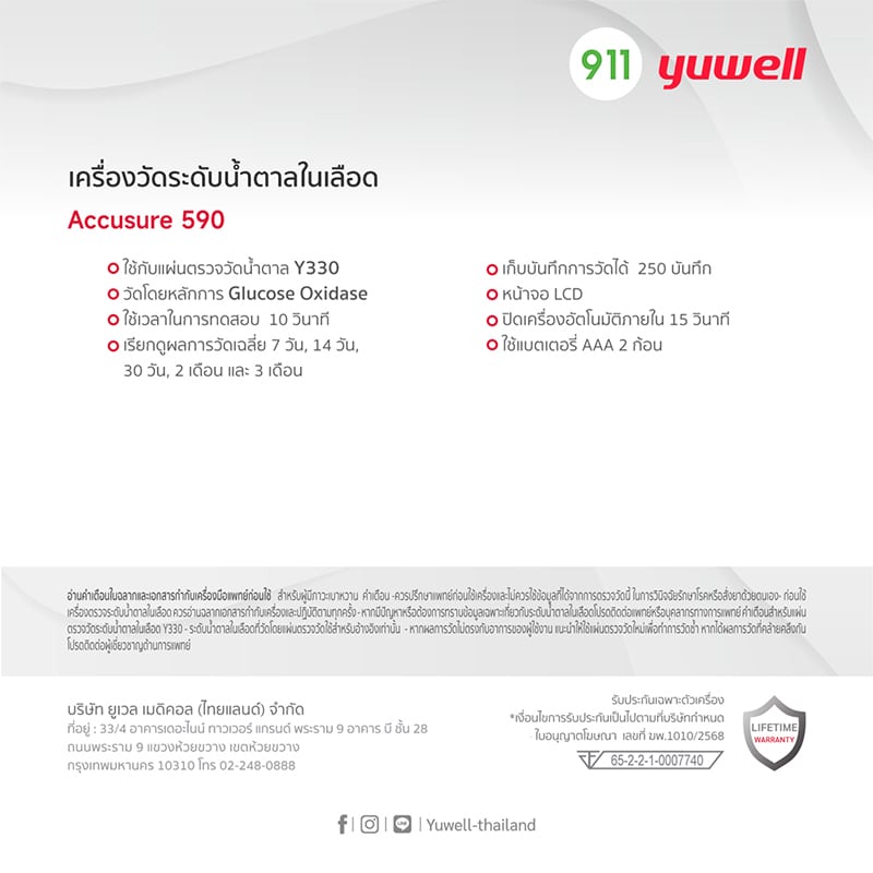 เครื่องตรวจน้ำตาล เครื่องวัดน้ำตาล ยูเวล590 (Yuwell Blood Glucose Meter 590)