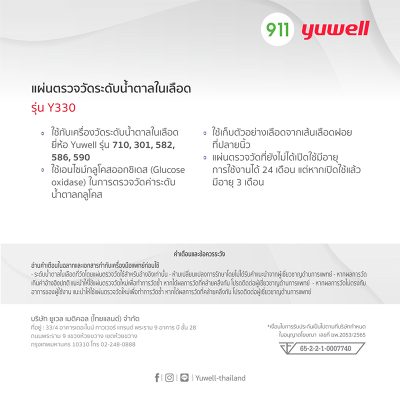ยูเวล แผ่นตรวจวัดระดับน้ำตาลในเลือด รุ่น Y330 Yuwell Blood Glucose Test Strip Y330