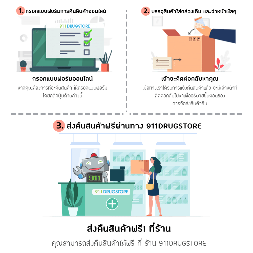 - กรณีเปลี่ยนใจหรือไม่ต้องการ คุณสามารถส่งคืนสินค้าได้ แต่กล่องพัศดุจะต้องไม่ชำรุดและยังไม่ได้แกะออก